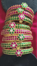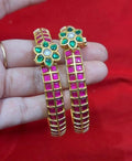 Brass based Jadau Kundan Openable Bangles. Set of 2.