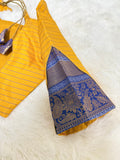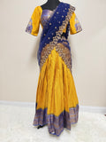 Semi Gadwal Pattu Lehanga with pattern blouse and net dupatta with cutwork borders