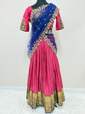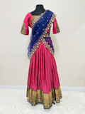 Semi Gadwal Pattu Lehanga with pattern blouse and net dupatta with cutwork borders