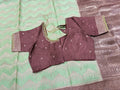 Banaras Munga Saree with maggam work blouse. Blouse size 40 and can extend upto 42. Fall and pico Ready.