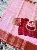 Pure Chiniya Pattu / Soft silk saree with maggam work stitched blouse. Blouse size is 40 and can be extended. Fall and Pico Ready.