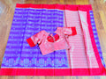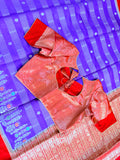 Semi Katan Silk saree with stitched blouse. Blouse size is 40”and can be extended. Sleeve length 10”