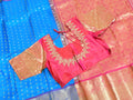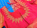 Silk Mark Certified Pure Kanchipattu / Kanjeevaram all over brocade Saree and stitched Maggam Work blouse. Blouse size is 40 and can be extended. Sleeve length 10”