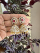 Diamond Finish CZ, Ruby and Emerald Short Necklace with Earrings. Base metal is Alloy. Necklace comes with adjustable dori. Earrings are approx 1” Long.