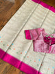 Semi Katan Silk saree with stitched blouse. Blouse size is 40”and can be extended. Sleeve length 10”