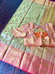 Silk Mark Certified Pure Kanchipattu Digital Print Kalmakari Saree with stitched maggam work Blouse. Blouse size is 40 and can be extended