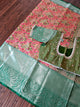 Silk Mark Certified Pure Soft Silk Ikkath Pattu Saree with stitched maggam work Blouse. Blouse size is 36 and can be extended