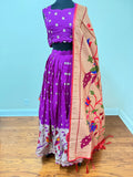 Banaras Paithani Lehanga with matching Sleevless blouse and Semi Banaras Paithani dupatta. Comes with optional sleeves