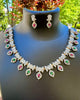 Pure 925 Silver with 24 Carat Gold Polish CZ Necklace with matching earrings. Necklace fits to neck with dori and can be adjusted. Earrings are appropriate 1.75” long.