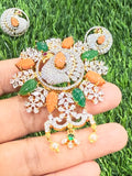 Pure 925 Silver with 24 Carat Gold Polish Diamond Finish Premium CZ Pendant embellished with corals and jades. Vomes with matching studs. Pendant measures 3” in height and 2.25” in width. Earrings 1”. Ready to ship in US…