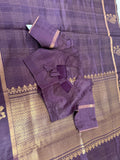 Dusty Purple Pure Jute Pattu Saree with stitched Blouse . Blouse size is 40 and can be extended.